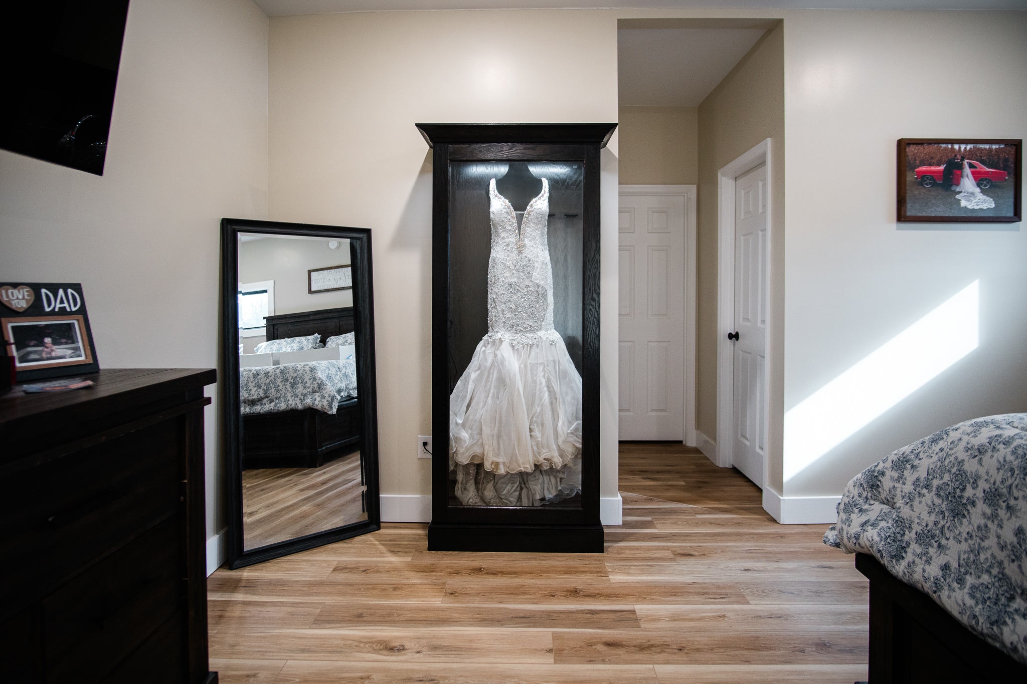 A husband wanted to do more than store his wife’s wedding dress, he wanted to honor it. After lots of building and trial runs, he created a way for her gown to be protected and displayed in their home, where its meaning could be seen and felt every day.